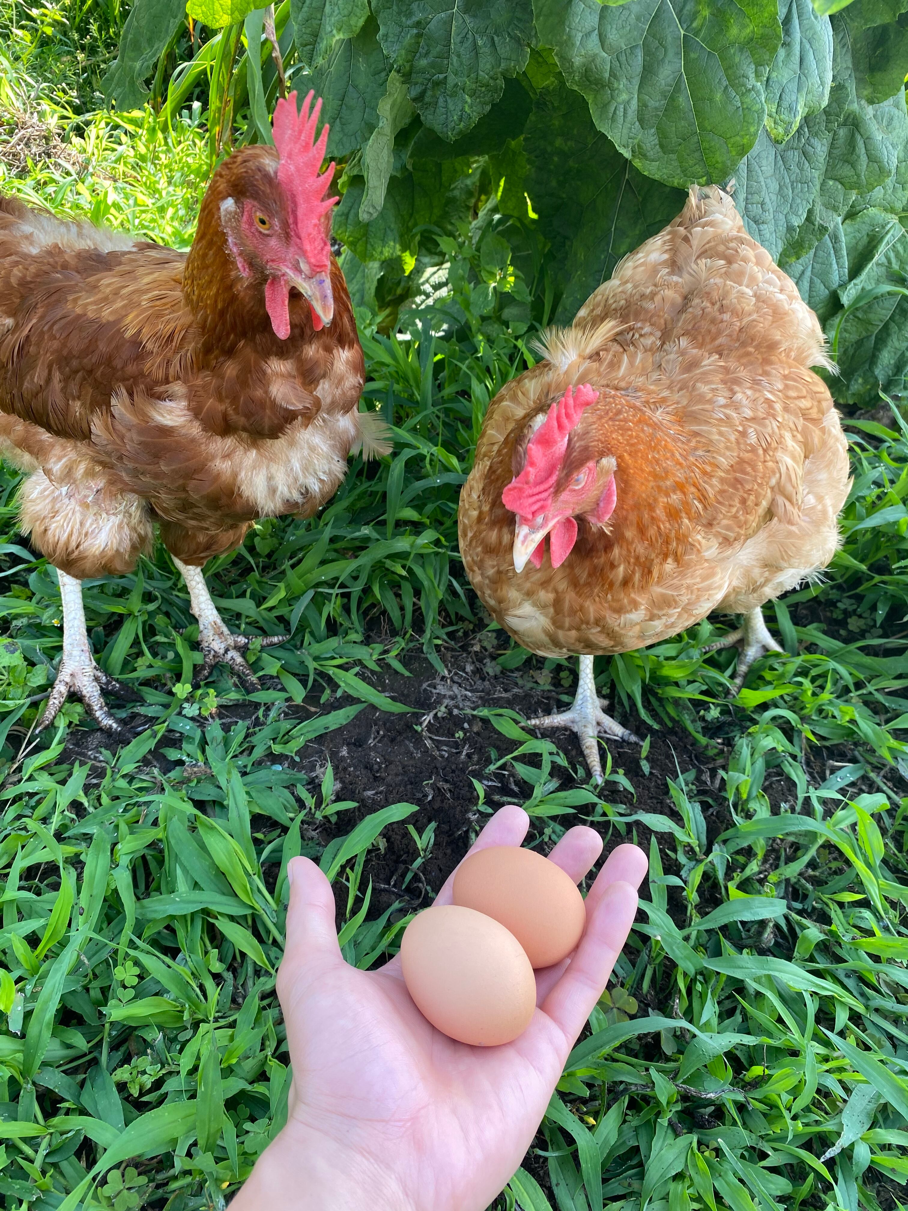 魚粉をはじめ動物性タンパクは与えておらず、うちの野菜を毎日たくさん食べさせてます!